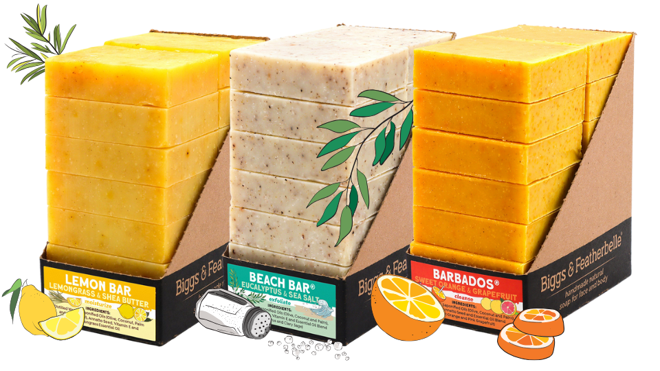 4 bar soaps for $18. Mix-n-Match. No tricks, all treats!