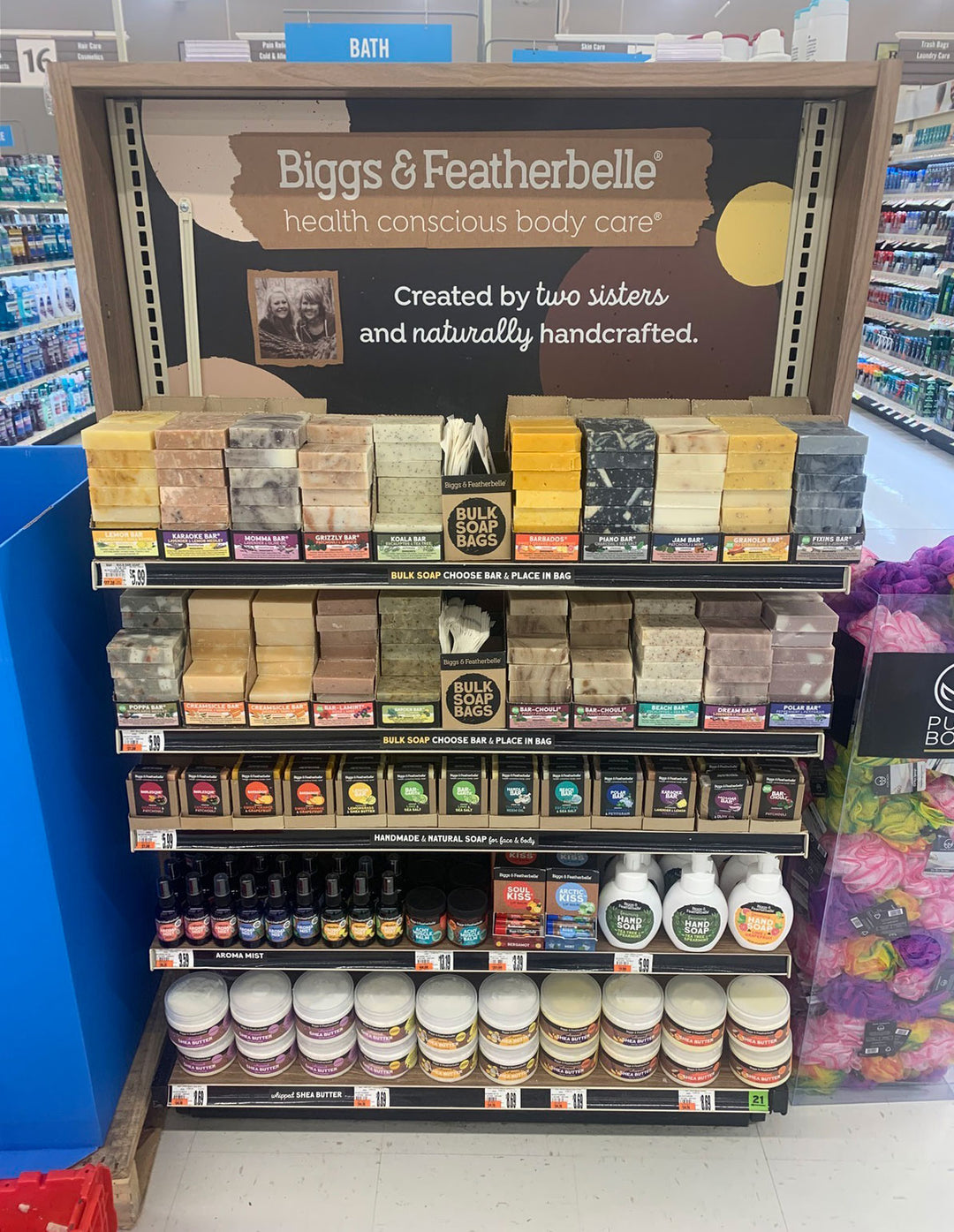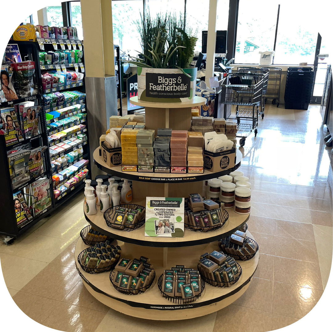 Join the growing number of grocery chains that carry Biggs & Featherbelle’s all-natural body care! Handmade, fresh-smelling products that make impressions and create stunning end caps that offer customers a unique sensory experience. We offer bulk purchase options, dedicated store merchandisers and an easy-to-work-with sales team committed to store success.